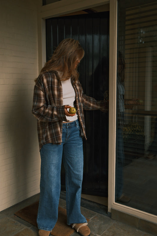 Camicia Quadri Marroni Donna – Blusa Casual a Quadri con Taglio Oversize